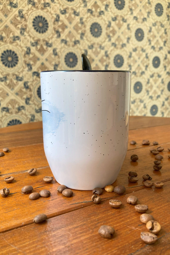 • Cor: Caneca de cerâmica branca com interior e alça preto e colher