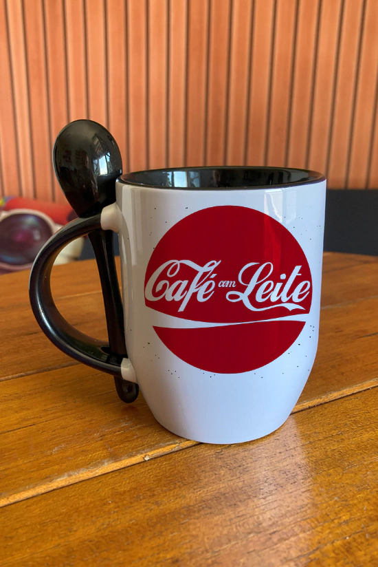Comece seu dia com estilo e sabor! A Caneca com estampa escrito "Café com Leite" traz um design icônico inspirado na famosa marca de refrigerante, perfeita para os amantes de café.