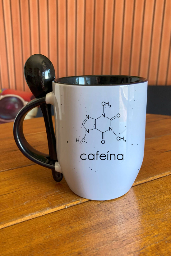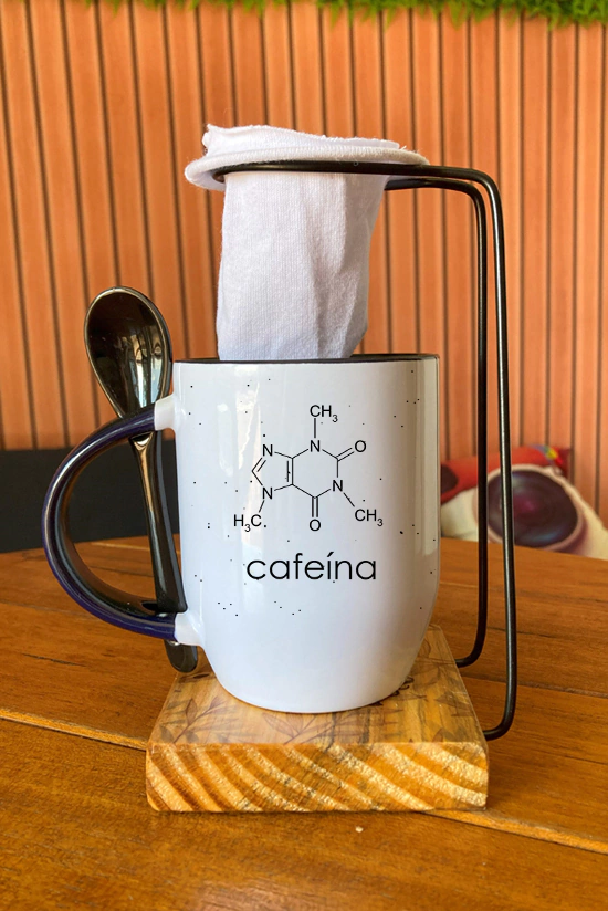 Esta caneca é uma verdadeira obra de arte, perfeita para quem vê a ciência e o amor pelo café como inseparáveis. Com uma estampa exclusiva que traz a fórmula da cafeína, ela é ideal para os amantes de café que buscam um toque de originalidade.