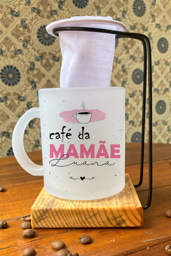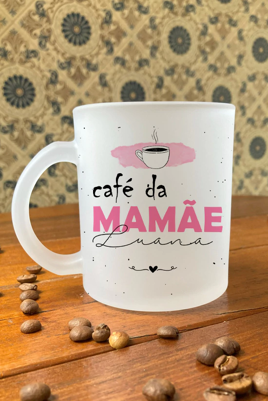 Transforme seu momento de café em algo ainda mais especial com a Caneca de vidro Café da Mamãe!