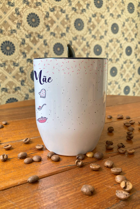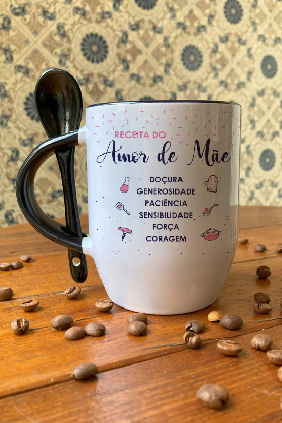 Inspirada na receita mais doce e valiosa que conhecemos, a caneca traz uma estampa que derrete corações. Cada gole do seu café será como um abraço quentinho, repleto de carinho e memórias afetivas.