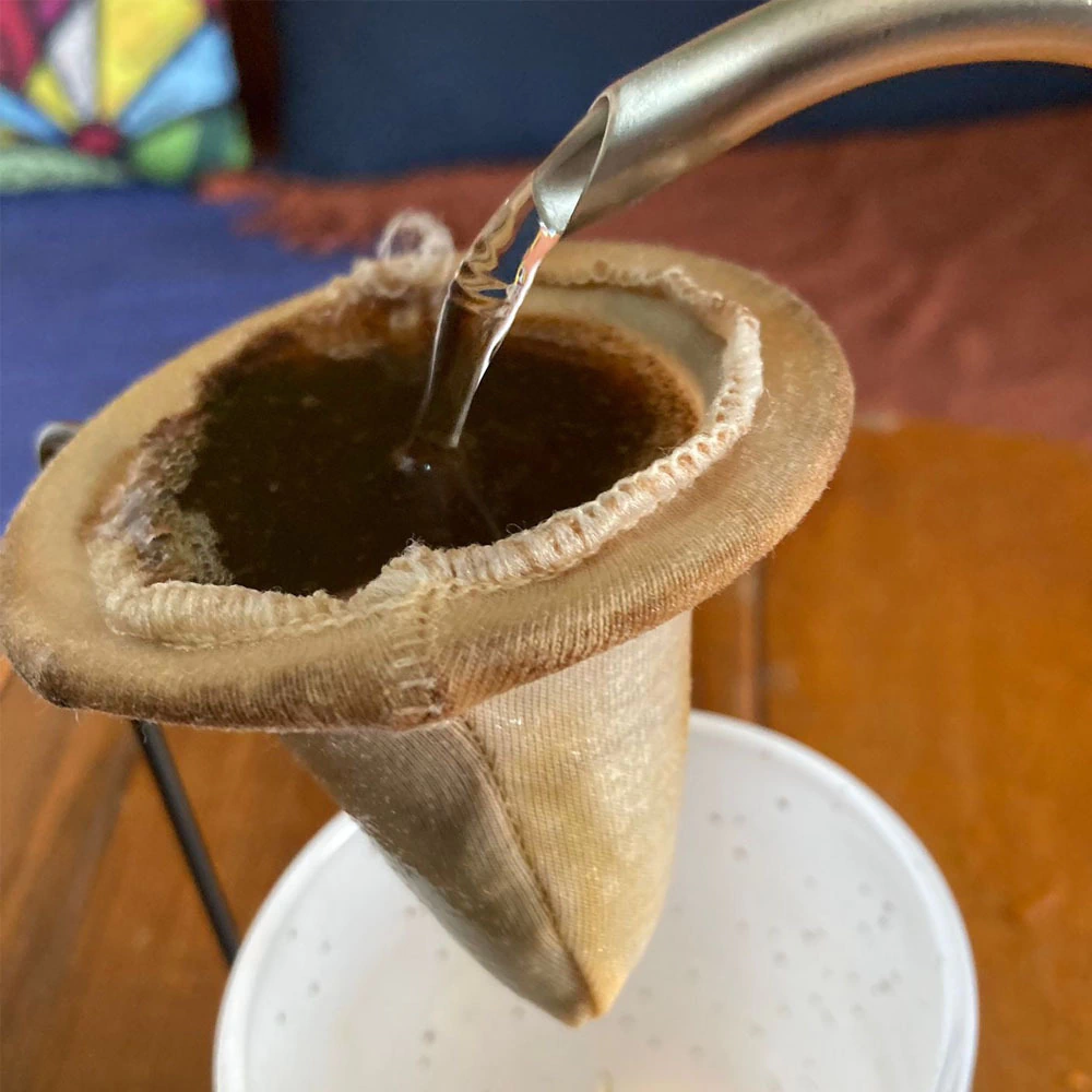 Ela ajuda a passar o café com mais controle e sem derrubar.