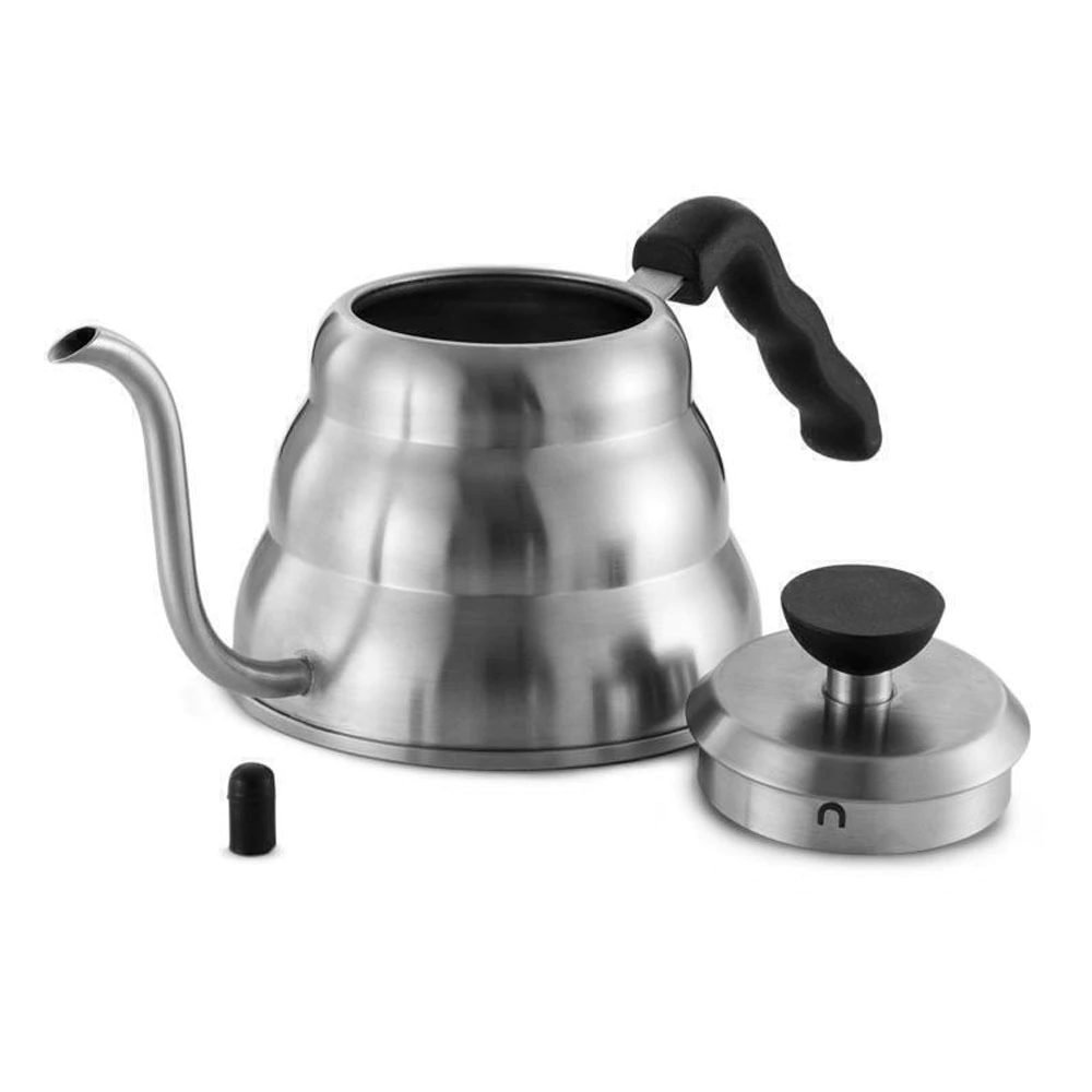 Com base que maximiza a condução de calor, é segura para uso em fogão a gás, elétrico e de indução para aquecimento rápido. Formato de pescoço de cisne e alça ergonômica.