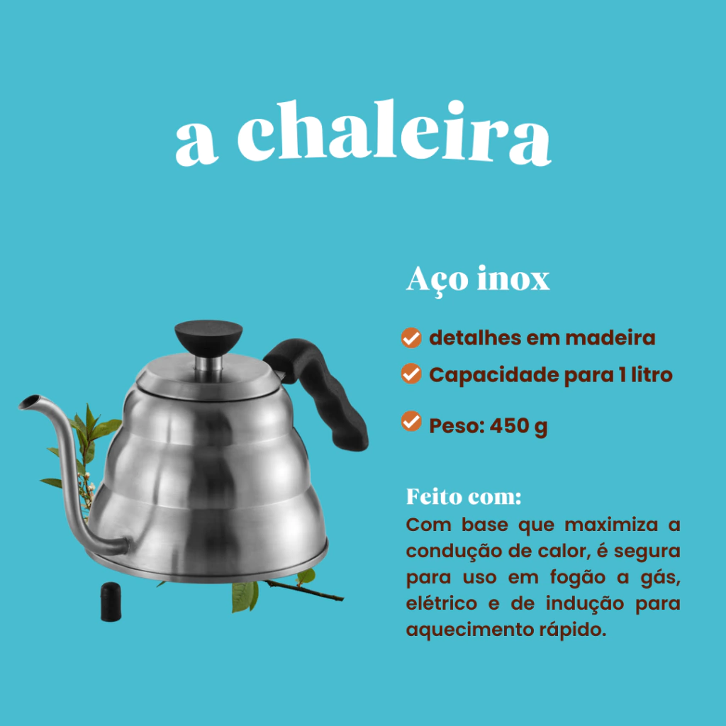 Nós aqui da Casa da Árvore priorizamos a qualidade e eficiência dos nossos produtos, por isso na hora do café essa chaleira é perfeita para você que usa os nossos coadores personalizados.