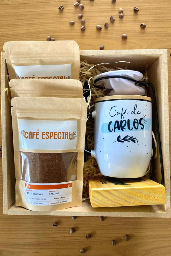 Este kit encantador é a escolha perfeita para aqueles que amam degustar um bom café em momentos especiais. Acompanha três sachês de café especial, proporcionando uma experiência única de sabores. Todos os itens são cuidadosamente apresentados em uma elegante caixa de madeira, que traz um charme extra ao presente.