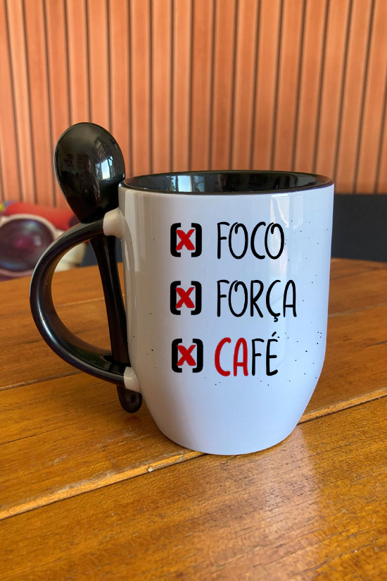A Caneca com a escrita Foco, Força e Café é perfeita para aqueles que sabem que um bom café é essencial para encarar o dia. Com uma estampa exclusiva e cheia de energia, esta caneca é ideal para presentear amigos ou para se mimar.