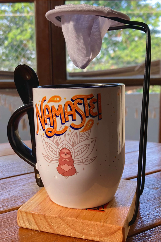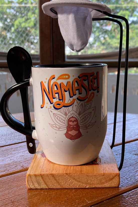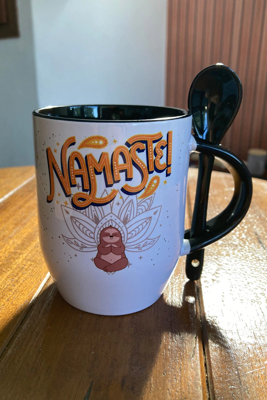 Traga um toque de tranquilidade para suas manhãs com a Caneca Namastê! 🌿