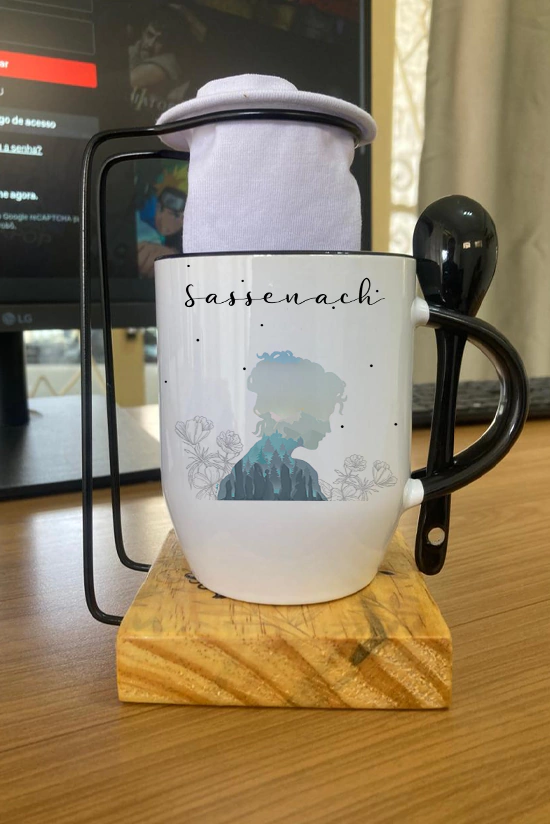 Transforme sua pausa para o café em uma verdadeira viagem no tempo com nosso kit exclusivo, que inclui uma caneca temática de Outlander e um coador de café individual com base de madeira. O presente perfeito para quem ama café, romance épico e aventuras pelas Highlands escocesas.