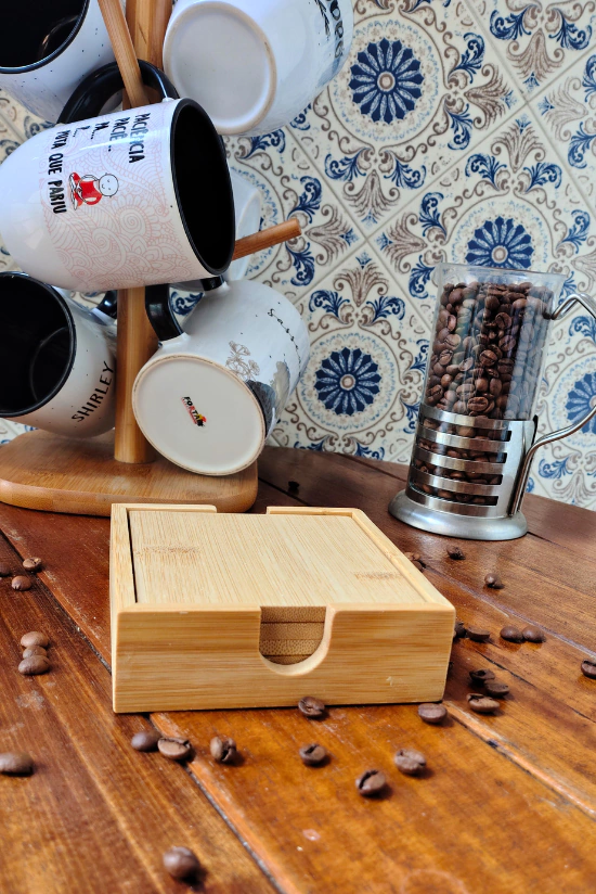 Organize suas canecas com charme e praticidade! Produzidos em bambu, material sustentável e resistente, esses porta-canecas oferecem durabilidade e um toque natural para sua cozinha ou cantinho do café.
