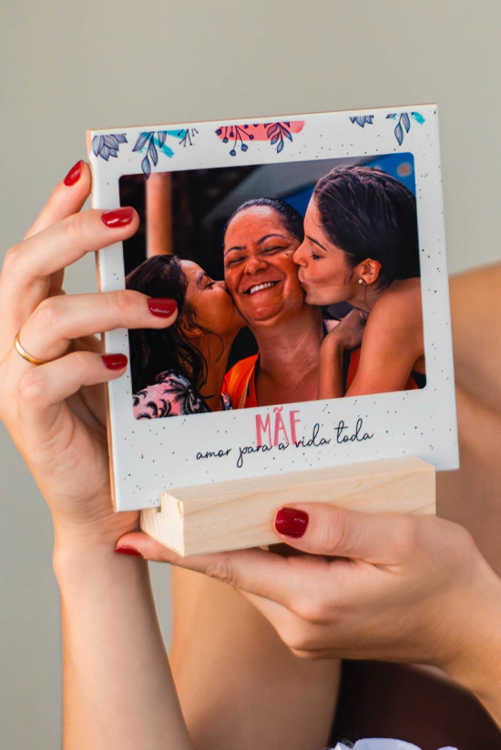 • 01 azulejo de 15x15cm personalizado com foto e base de madeira