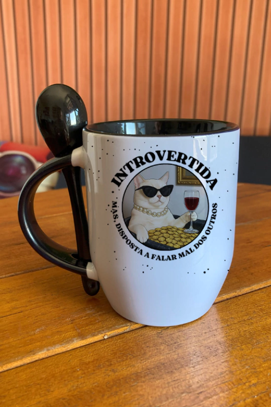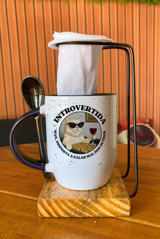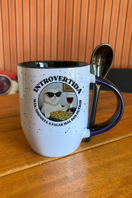 A “Introvertida, mas disposta a falar mal dos outros” é divertida, autêntica e combina perfeitamente com um café quente e boas risadas entre amigos.