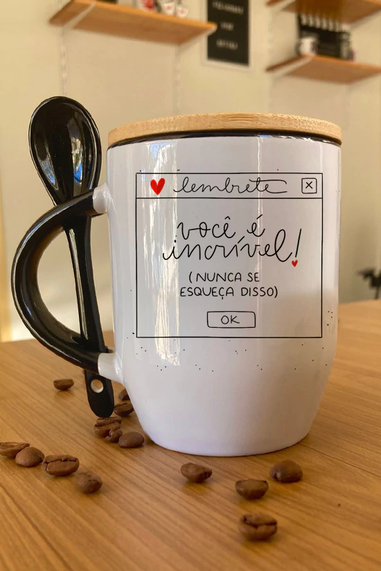 Este kit de presente é perfeito para surpreender o amor da sua vida. Ele inclui uma caneca de cerâmica de alta qualidade, com a frase "LEMBRETE: VOCÊ É INCRÍVEL".