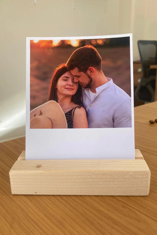 • 04 fotos polaroids com 01 base de madeira